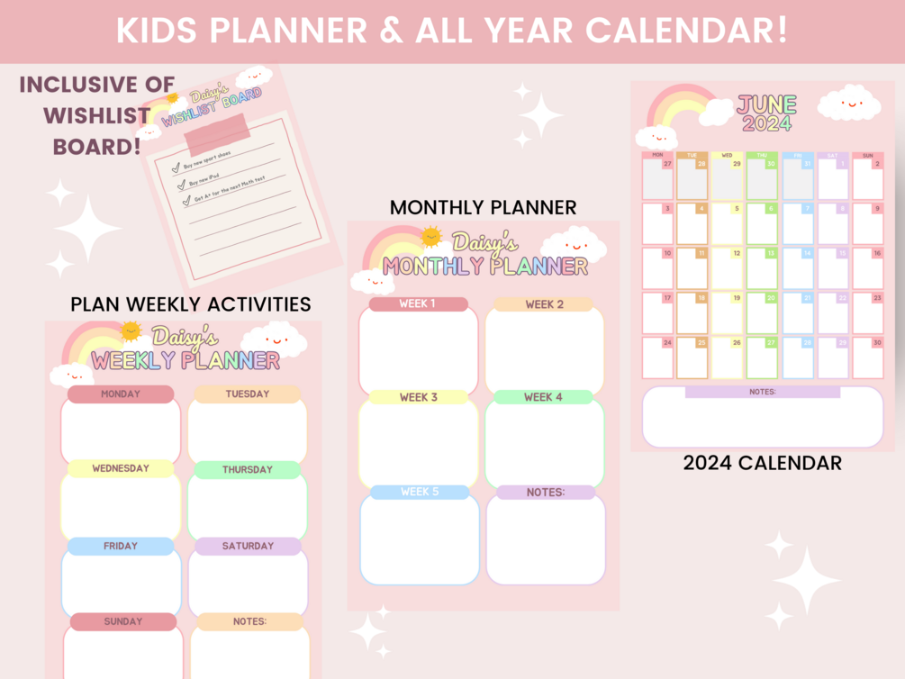 • Kids DAILY, WEEKLY & MONTHLY Planner