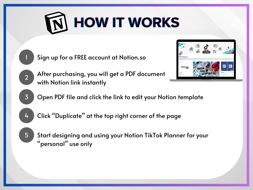 Whether you're a seasoned TikTok creator or just starting out, our Notion TikTok Planner is your ultimate tool for strategic planning and content management. Start planning, creating, and succeeding on TikTok today!