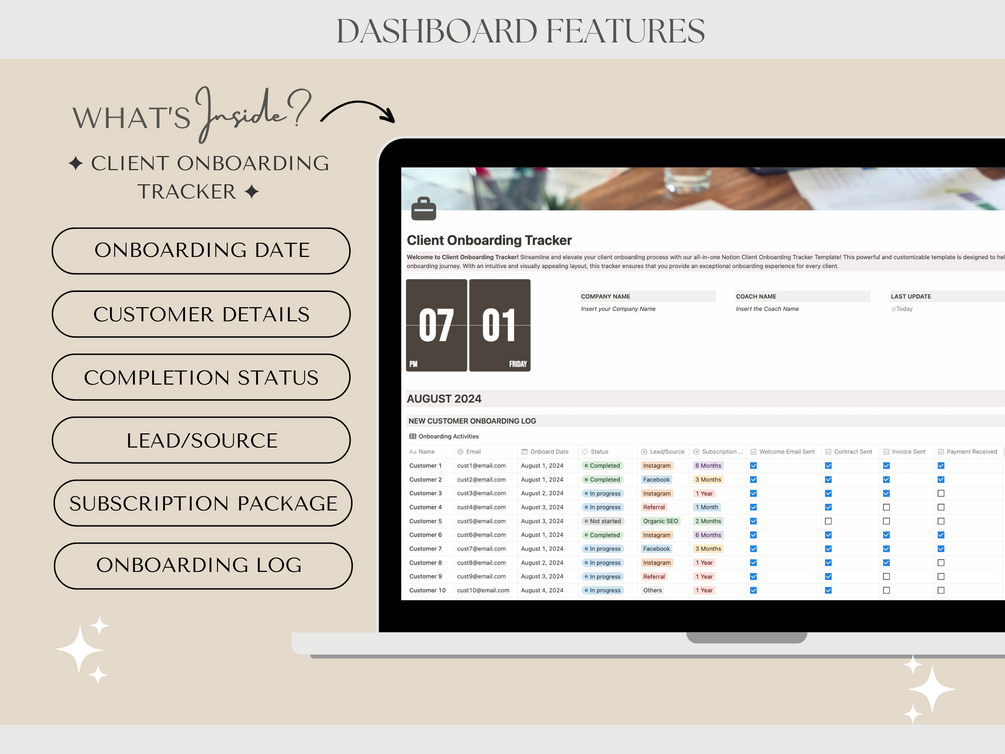 This tracker is designed to help you manage your client onboarding process more effectively, saving you time and ensuring a smooth and professional experience for your clients.