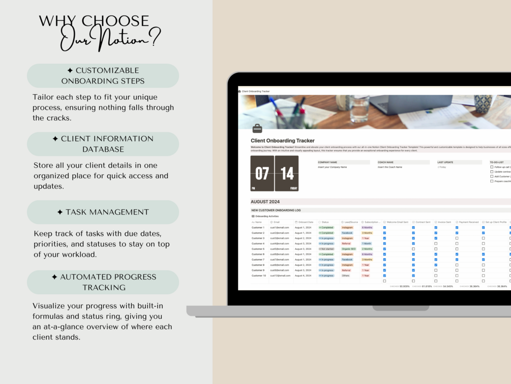Purchase now and take the first step towards a more organized and professional client onboarding process with our Notion Client Onboarding Tracker!