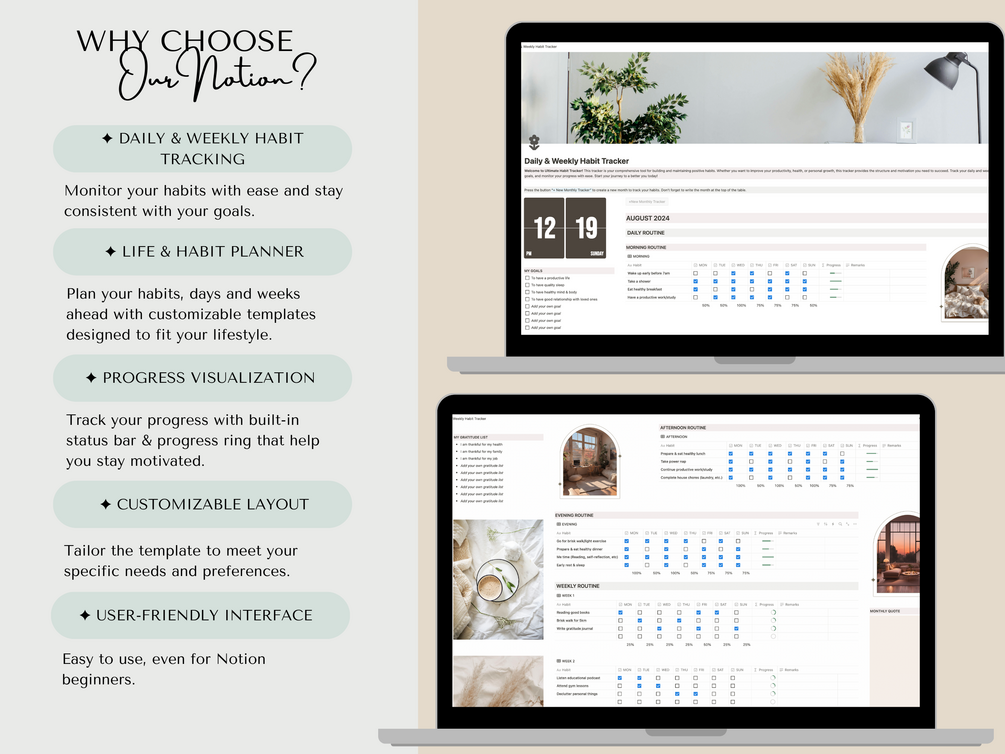 Notion Habit Tracker | Daily & Weekly Routine | Life Planner | Habit Tracking | Task Tracker | Notion Template | Productive Life