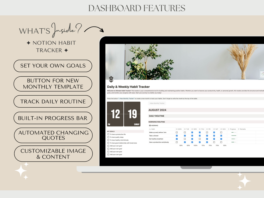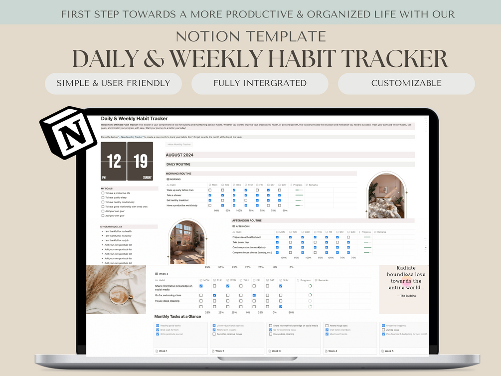 Notion Habit Tracker | Daily & Weekly Routine | Life Planner | Habit Tracking | Task Tracker | Notion Template | Productive Life