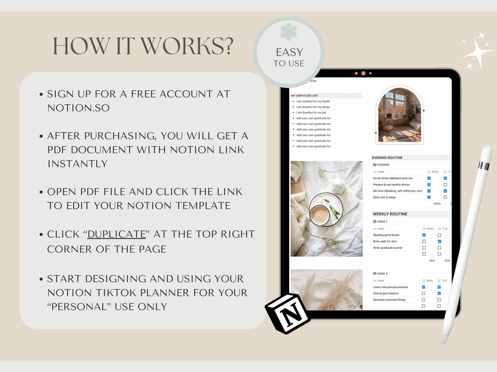 -Duplicate the template to your Notion workspace with a single click.