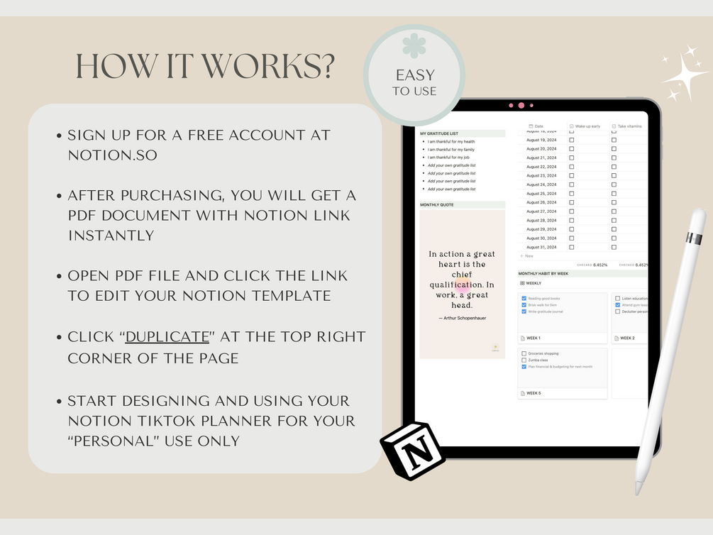 -User-Friendly Interface: Simple and intuitive design that’s easy to use, even for Notion beginners.