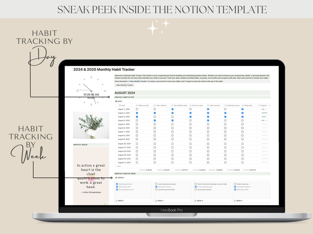 -Monthly Habit Tracking by Day & Week: Stay on top of your habits with detailed tracking options that keep you accountable.