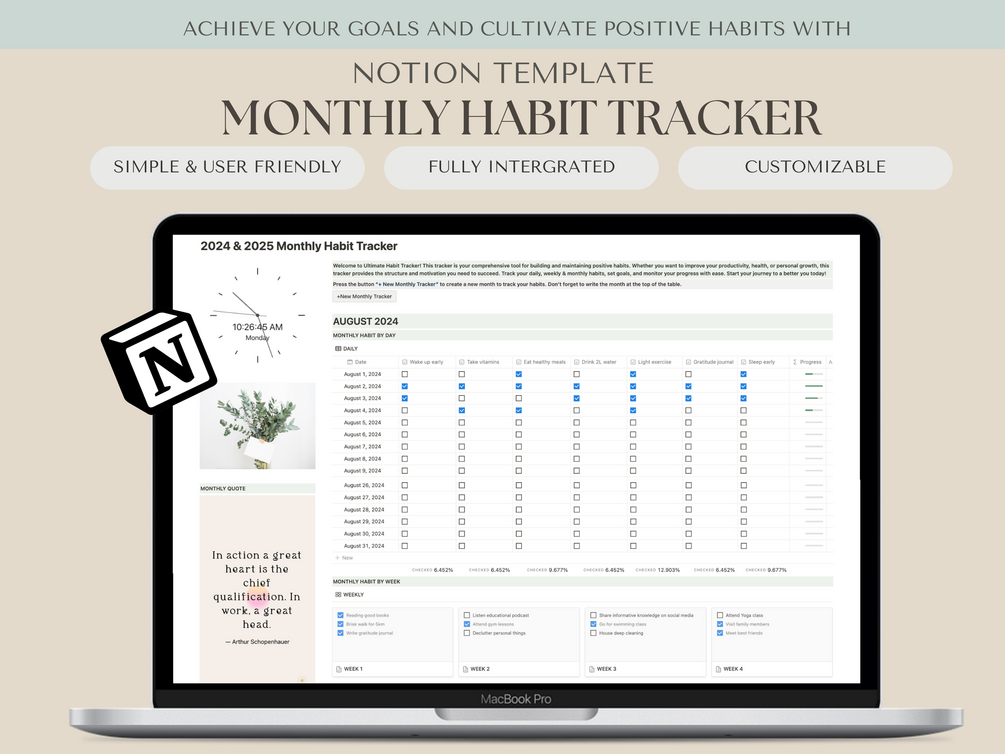 Purchase now and start your journey towards a more organized and positive life with our Notion Monthly Habit Tracker template!